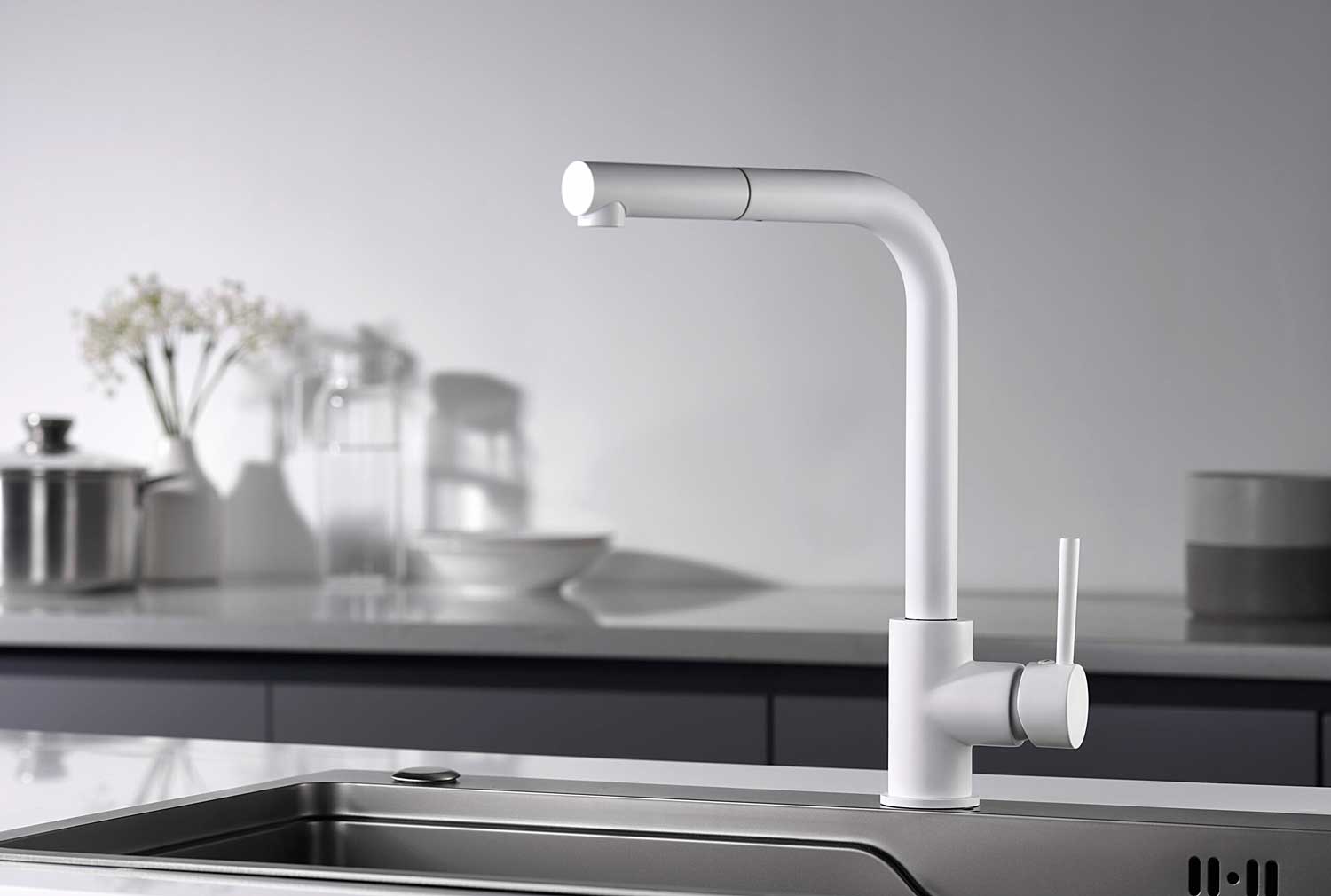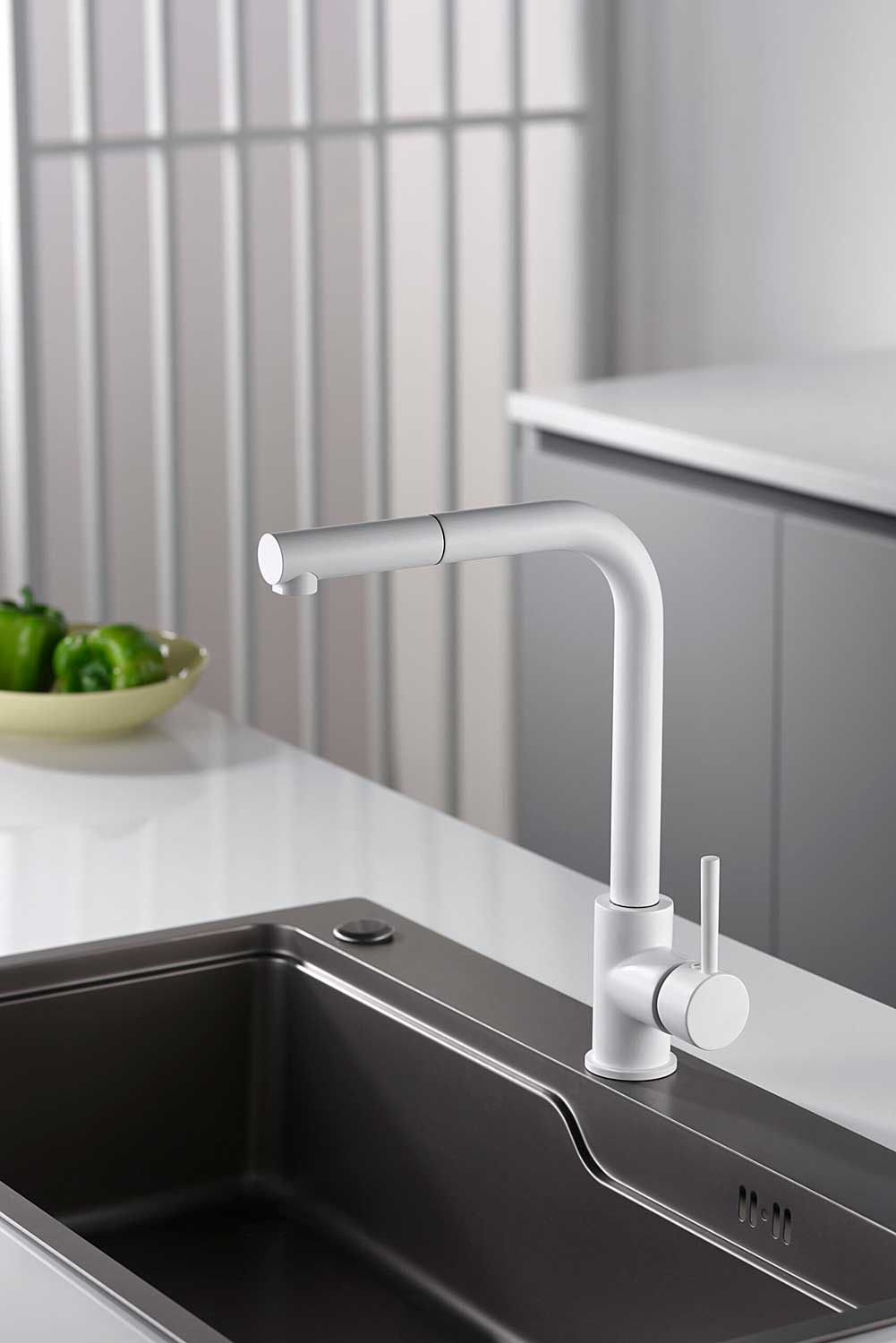 MALTA SERIES MATT WHITE PULL-OUT SINGLE-LEVER KITCHEN FAUCET