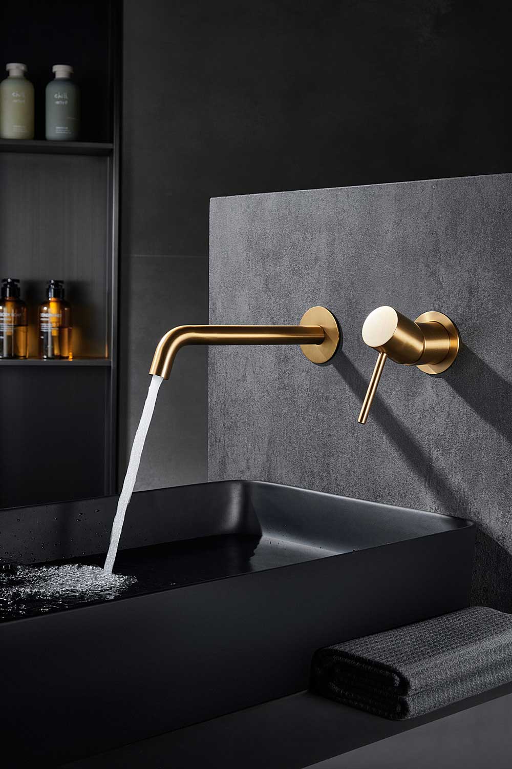 Brassware / Wall Mounted / MONZA SERIES BRUSHED GOLD SINGLE HANDLE RECESSED SINK FAUCET
