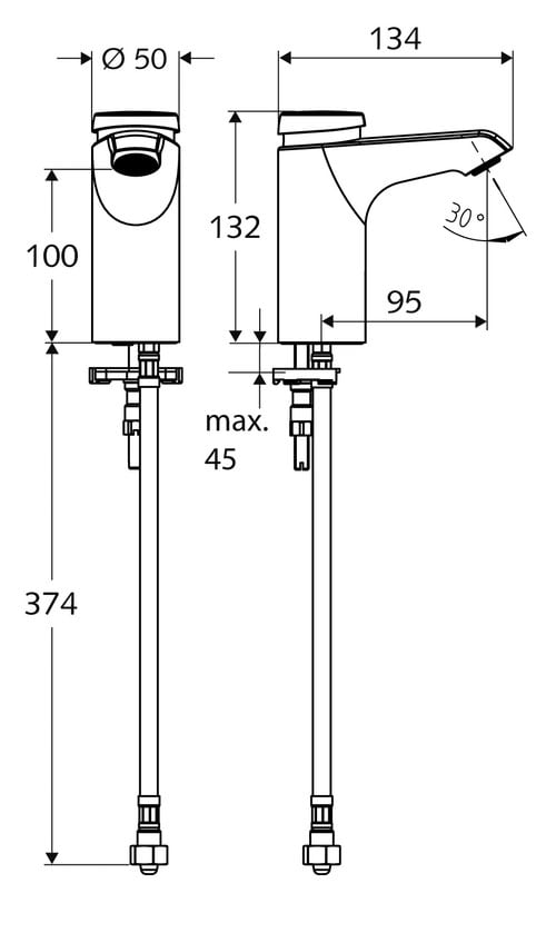 Max. operating temperature: 70 °C (80 °C for thermal disinfection)